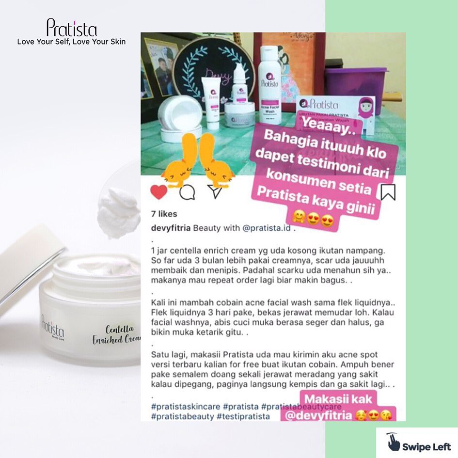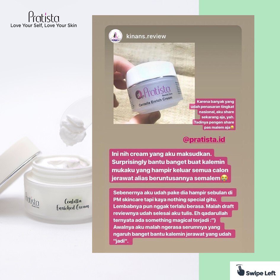 Dimana produk yang disediakan adalah produk untuk mengatasi berbagai keluhan kulitmu seperti jerawat. Si salicylic acid dari Pratista ini ga aku coba karena. Pratista Centella Enrich Cream merupakan cream wajah yang mengandung Centella Asiatica yang berfungsi melembabkan wajah serta merawat wajah yang memiliki keluhan scar bopeng ataupun jerawat.