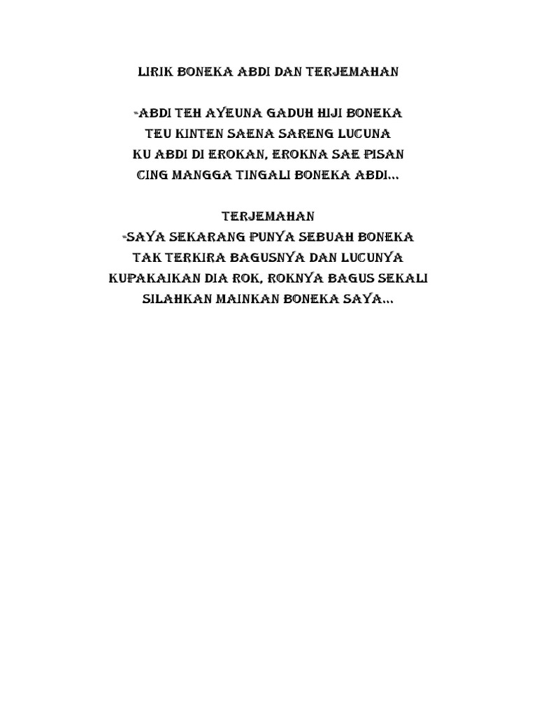 Dalam bahasa indonesiaSaya sekarang punya sebuah bonekaTak terkira bagus dan lucuSaya pakaikan rok rok nya pun bagusAyo silahkan lihat boneka saya. Not Angka Boneka Abdi Pianika Dan Recorder Paling Mudah. Tak heran jika lagu ini sering dinyanyikan dan diajarkan pada anak anak kecil.